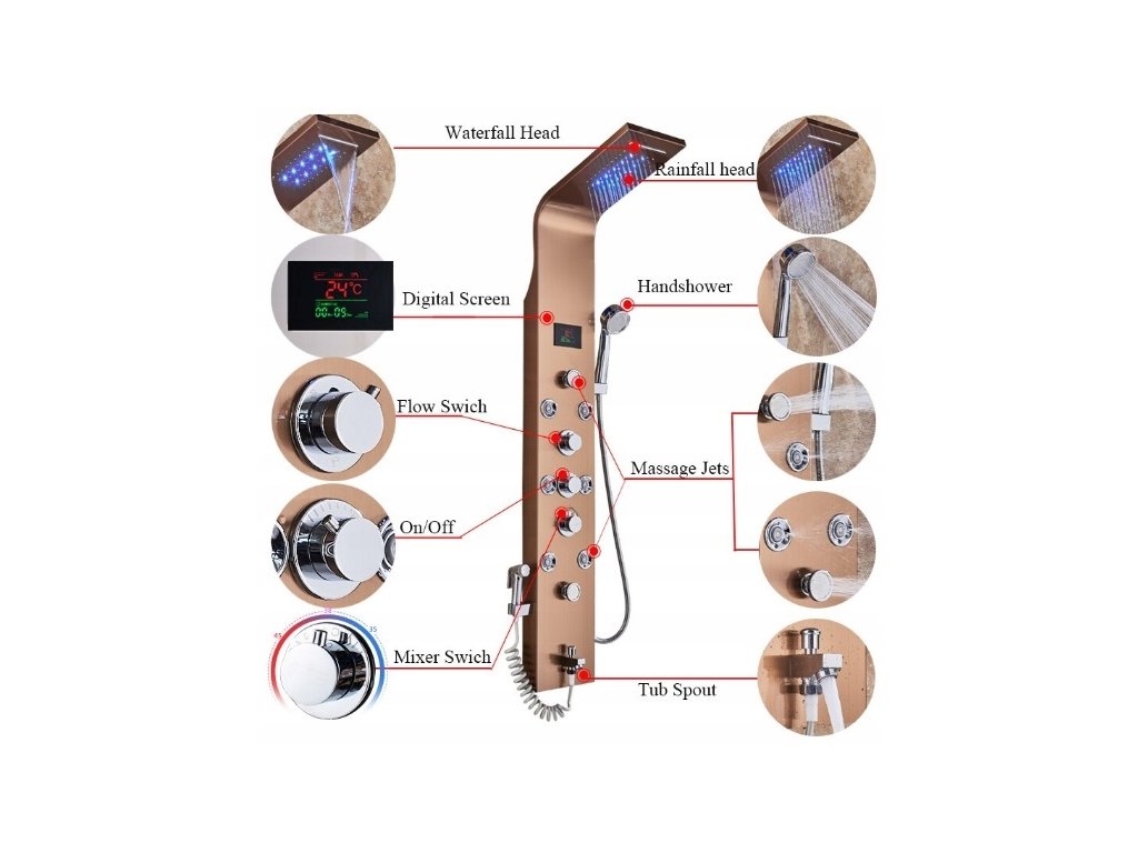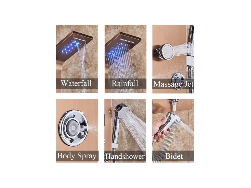 LED sprchový panel sprchová vodopádová hydromasáž