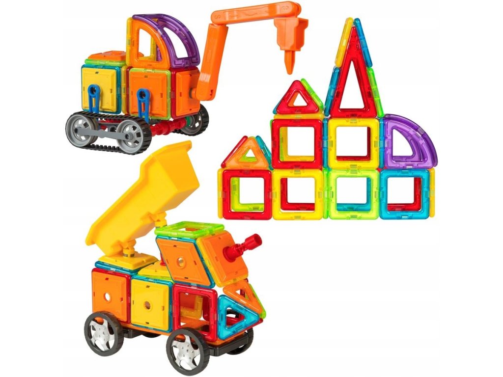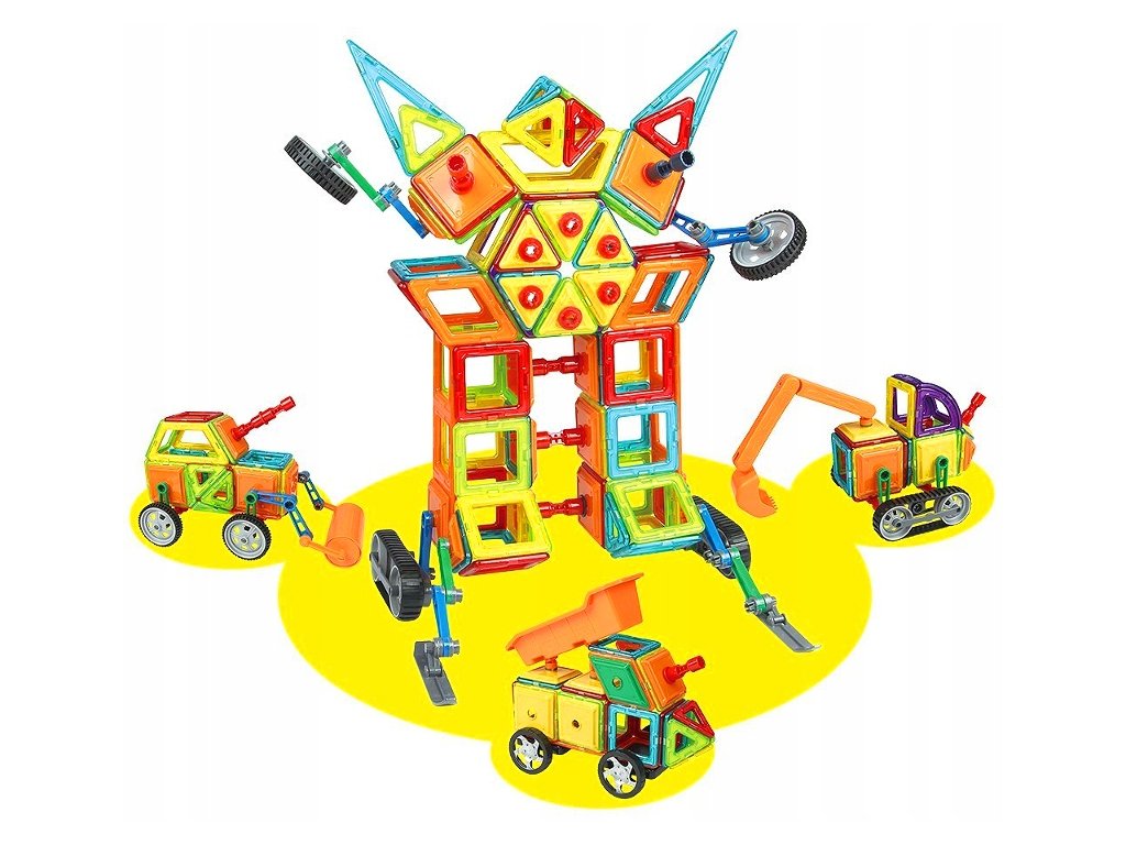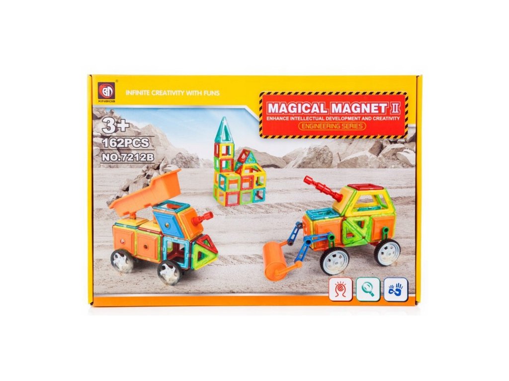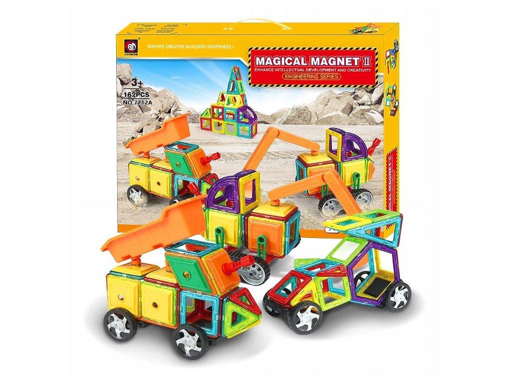 • GIGANTYCZNY ZESTAW MAGICAL MAGNET - to różnorodne 162 elementy klocków i akcesoriów do zabawy i budowy maszyn.