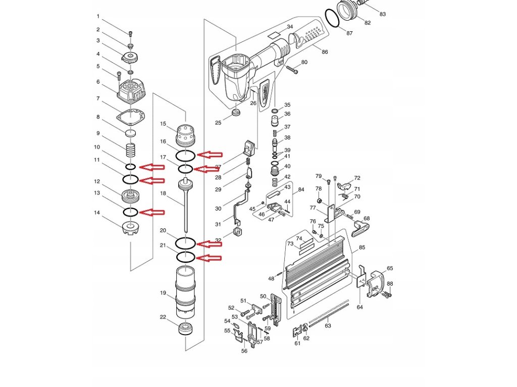 MAKITA kruhovitého prierezu, o-KRÚŽOK SÚPRAVA na OPRAVU PRE AF505