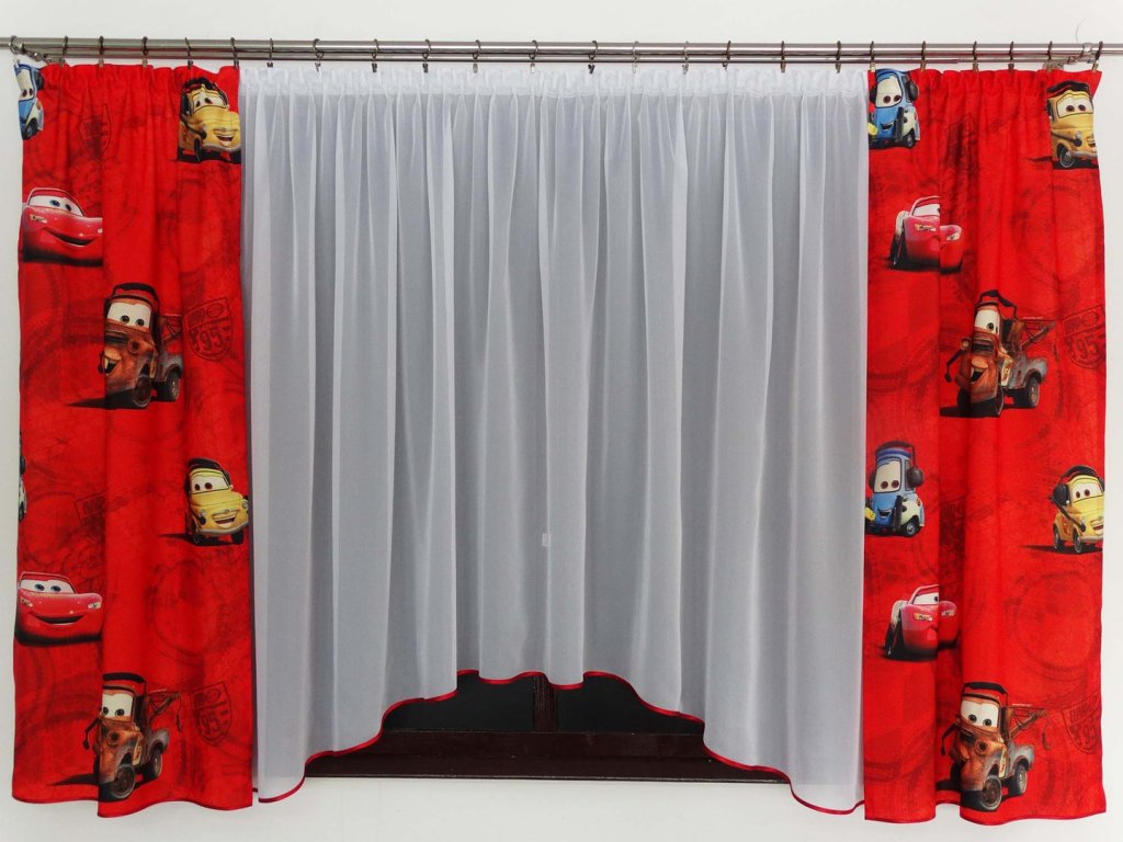 ZASŁONA uszyta z tkaniny jednostronnie drukowanej CARS 54, na taśmie SMOK 5cm, dół obszyty lamówką
