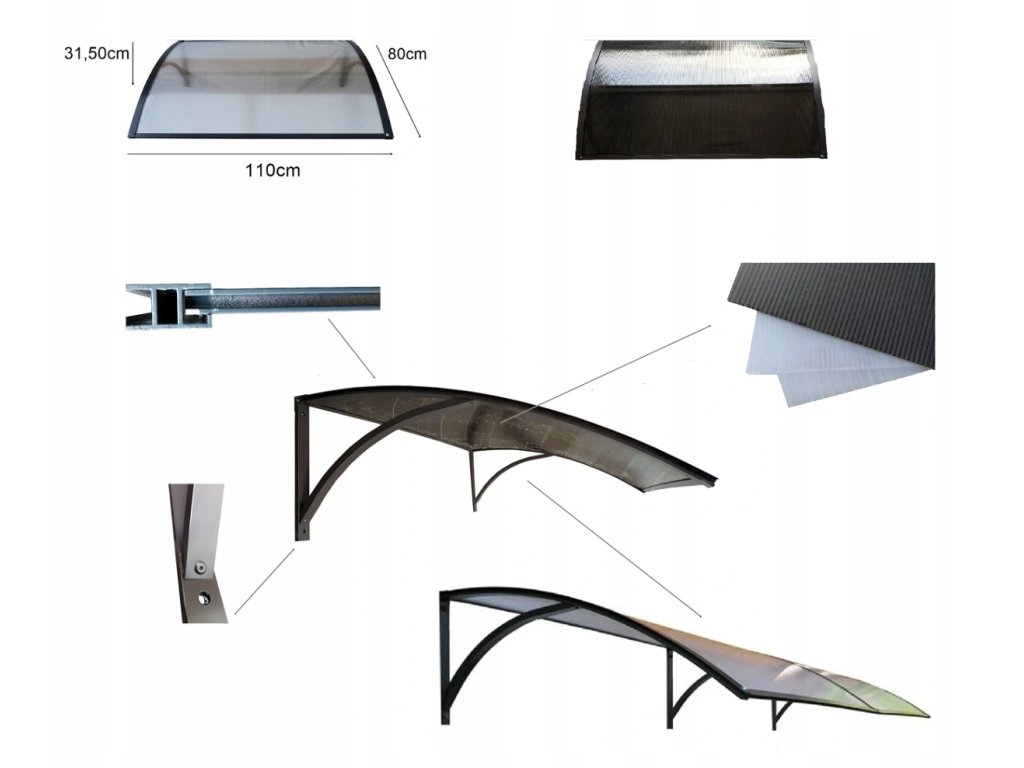 Daszek wykonany z poliwęglanu komorowego dostępnego w dwóch wersjach kolorystycznych: