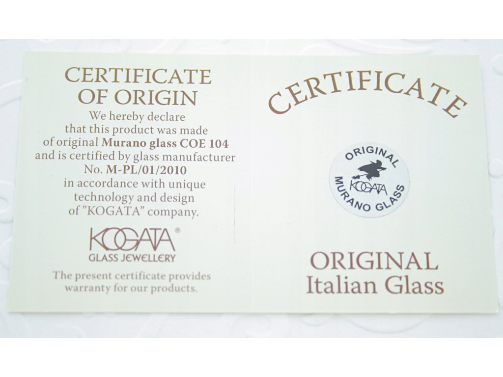 Posiadamy certyfikat szkła Murano.