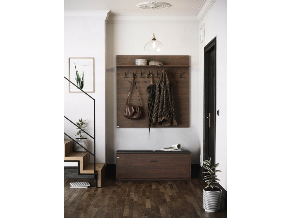 - Szafka na buty z siedziskiem (SBP1) o wysokości 55 cm, wyposażona w dwa schowki pod dzielonym siedziskiem. Ponadto korpus mebla został podzielony na cztery praktyczne komory na obuwie. Świetnie sprawdza się jako niezwykle funkcjonalny element zabudowy przedpokoju.