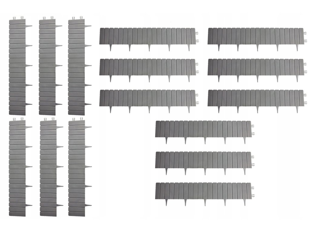 Zestaw zawiera 15 sztuk czyli 15 metrów Eko-palisady w kolorze szarym.