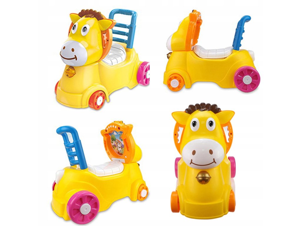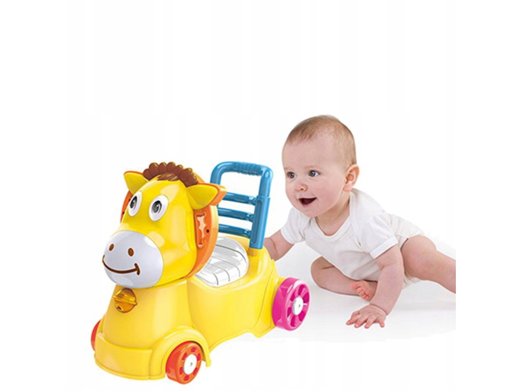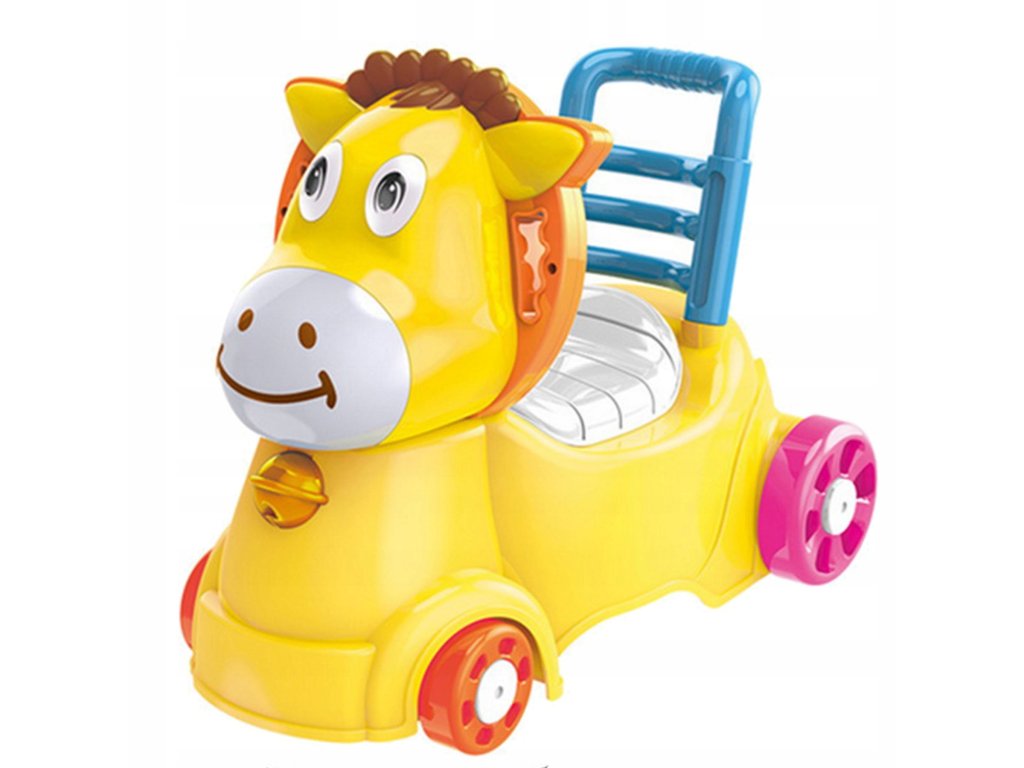 Jeździk-pchacz to idealna zabawka dla każdego maluszka, który zaczyna stawiać swoje pierwsze kroczki i wspomoże dziecko w nauce chodzenia. Ten wspaniały jeździk przybliży maluszkowi jak wygląda jazda ma rowerze. Jeździk został wyposażony w oparcie, które zabezpiecza dziecko przed przechyleniem do tyłu. Atrakcyjności zabawce dodaje śliczna buzia konika, która z pewnością przyciągnie uwagę dziecka. Zabawka została wykonana z wysokiej jakości materiałów i jest bezpieczna dla dziecka.