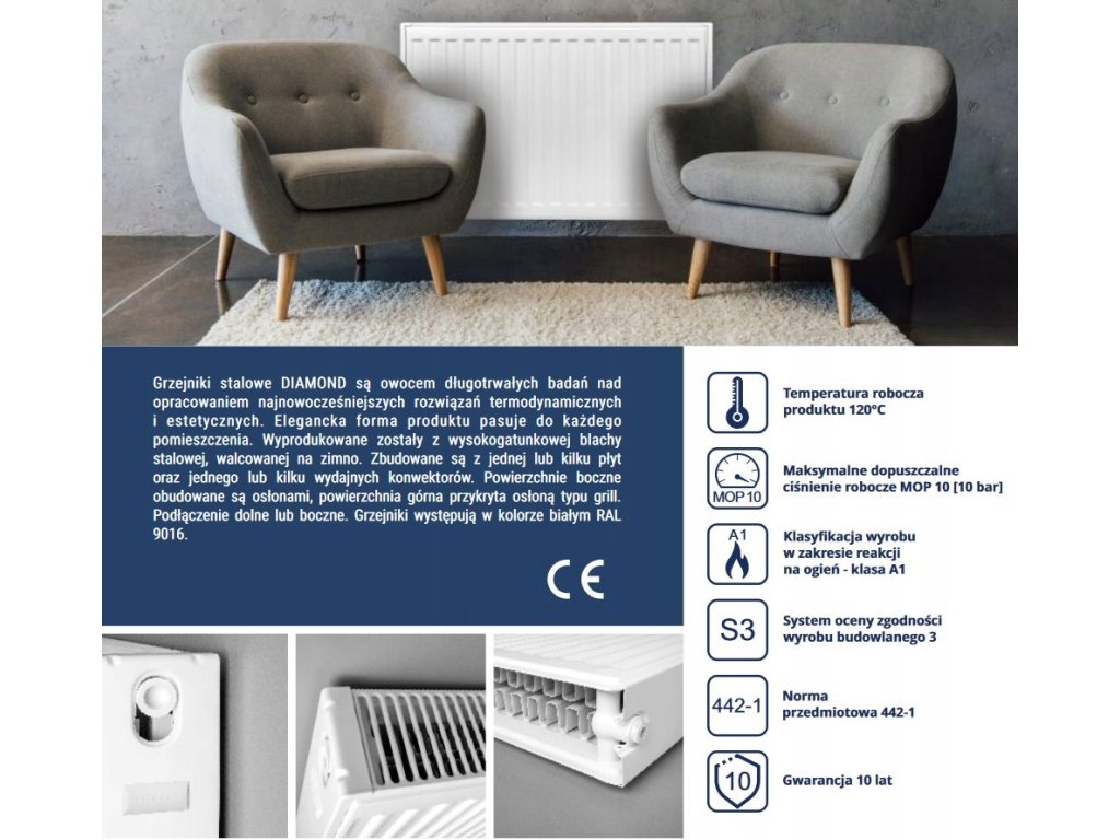 • Grzejniki stalowe DIAMOND stosowane są w zamkniętych oraz otwartych układach jedno – dwururowych C.O.