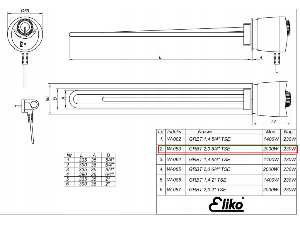 Ohrievač ELIKO s termostatom pre zásobník 5/4 2KW