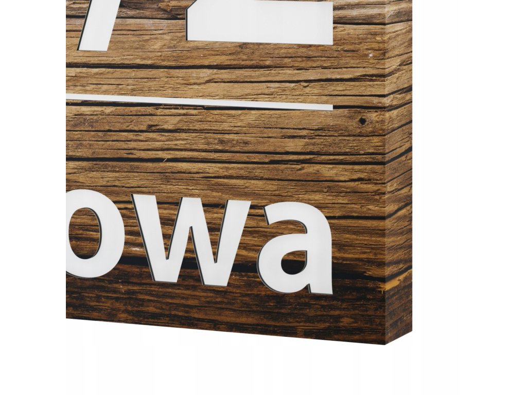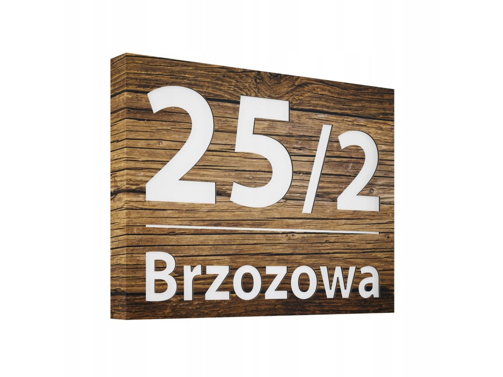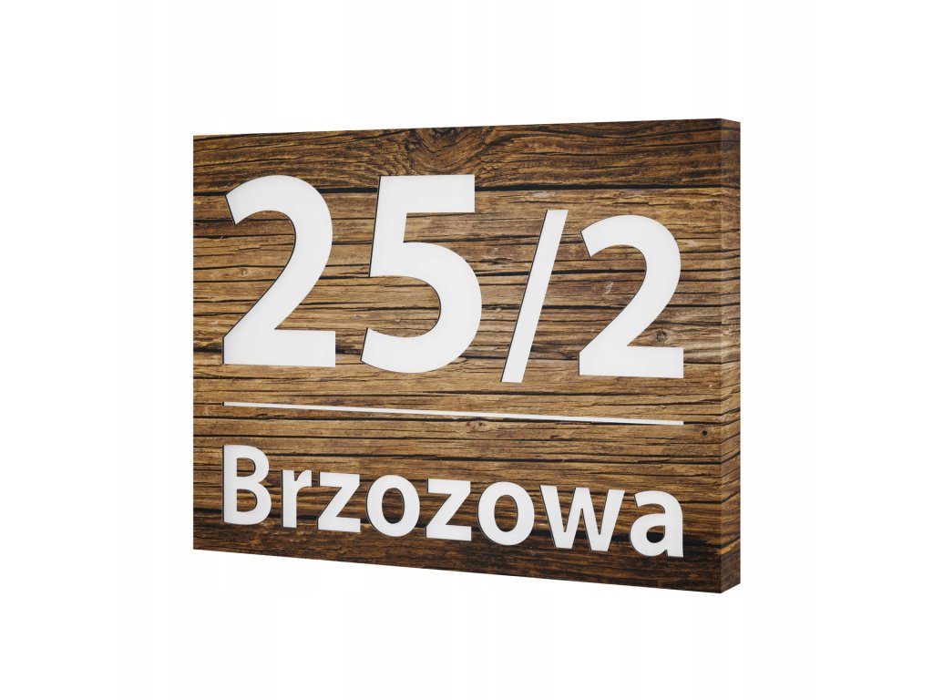 Tabliczka adresowa wykonana z solidnej warstwowej płyty aluminiowej, odpornej na najgorsze warunki atmosferyczne, w kolorze imitującym fakturę drewna. W tabliczkach oznakowanych jako 1RB numer domu znajduje się w górnej części. Pod spodem natomiast widnieje nazwa ulicy. Tabliczka jest w kolorze imitującym drewno o odcieniu dębu venge, dobrze wyglądającym wśród drewnianych dodatków.