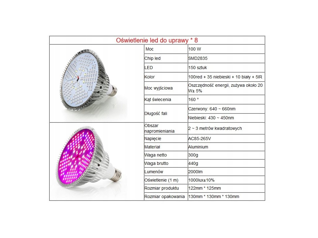 100 W LED ŽIAROVKA NA PESTOVANIE RASTLÍN