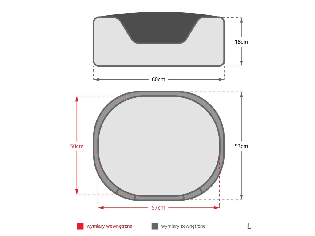 • L - szer: 60cm, gł: 53cm, wys: 18cm