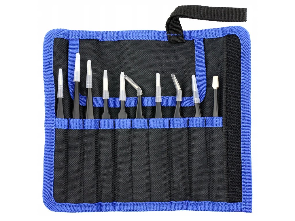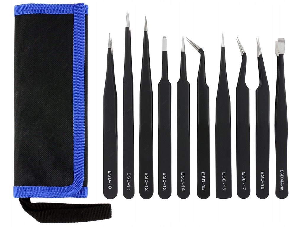 ZESTAW 10 METALOWYCH PINCET ESD + ETUI