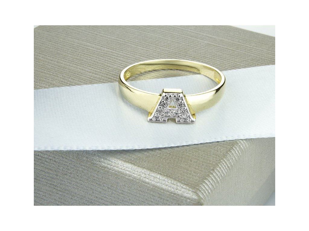 Oryginalny pierścionek z naszej kolekcji Literki, wykonany z żółtego złota próby 333, z literką A wysadzaną cyrkoniami. Pierścionek wyróżniają niepowtarzalny wygląd oraz precyzja wykonania. Doskonały prezent dla "A" na każdą okazję.