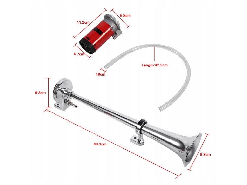 • Z wypolerowaną czerwoną sprężarką i błyszczącym chromowanym klaksonem nadają efektowny wygląd każdemu zamontowanemu pojazdowi.