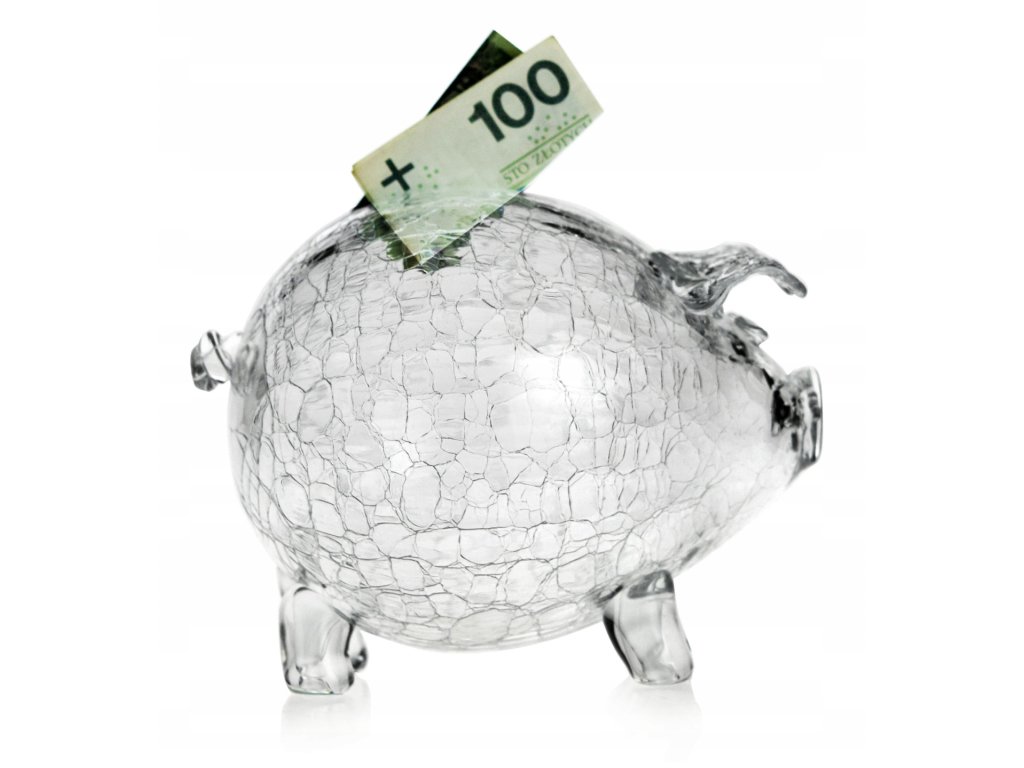 W naszym przypadku bezbarwna świnka pozwoli pięknie eksponować odkładane pieniążki.