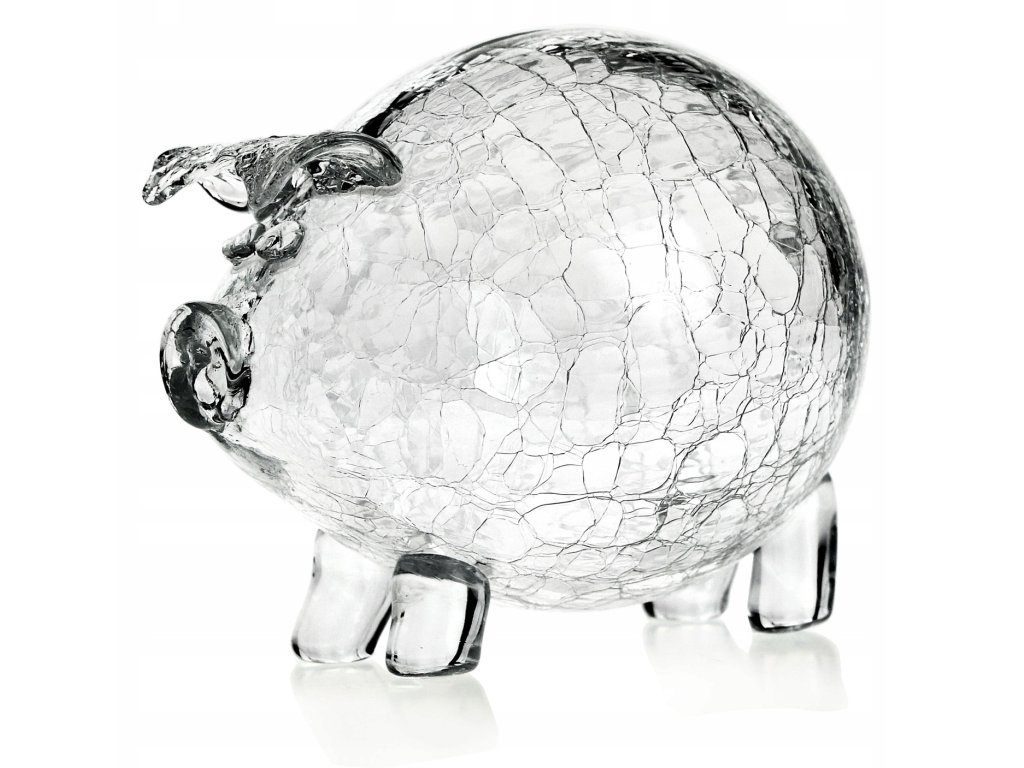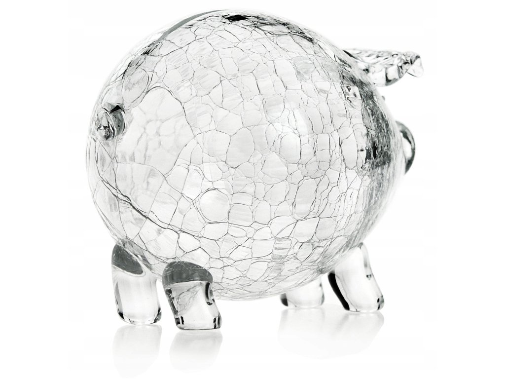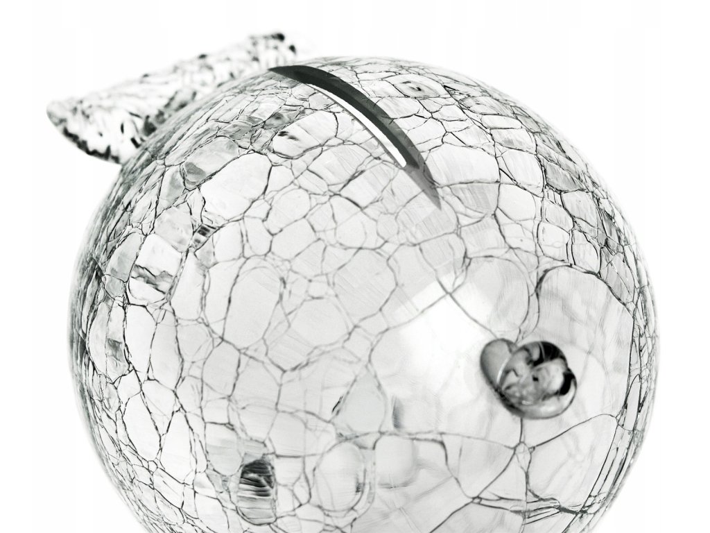 Bardzo duża szklana ręcznie wykonana skarbonka ŚWINKA "Crackle"