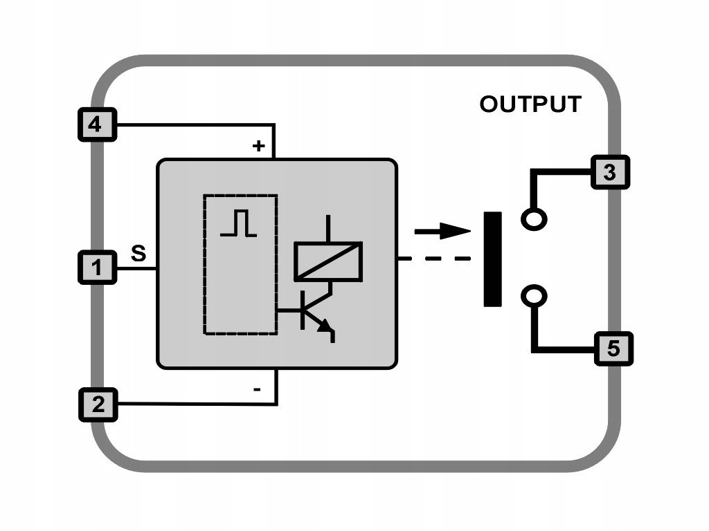 Każde pojawienie się impulsu na wejściu S+, zmienia stan przekaźnika na przeciwny, (włączenie / wyłączenie).