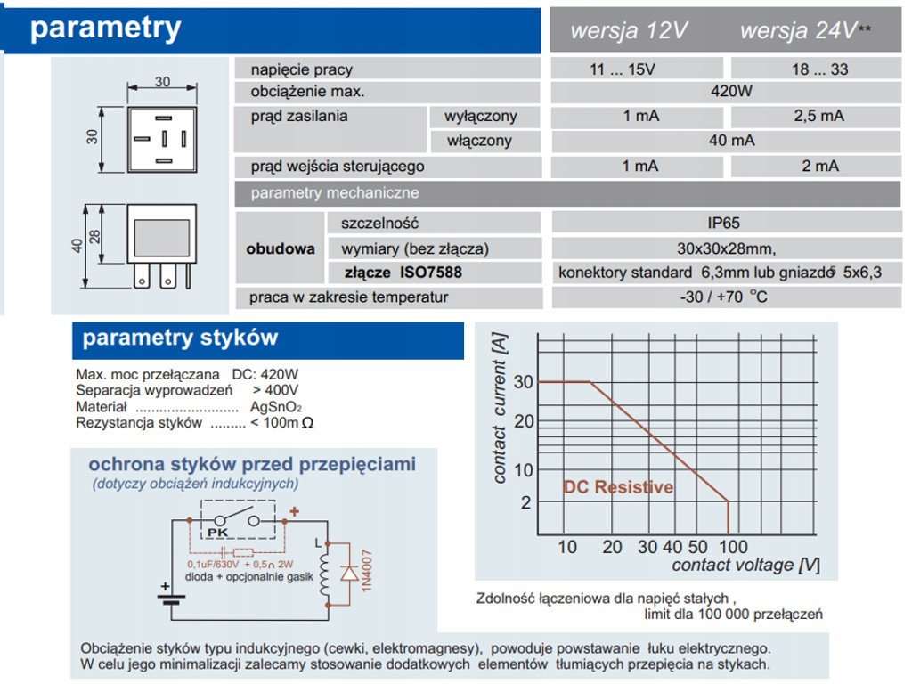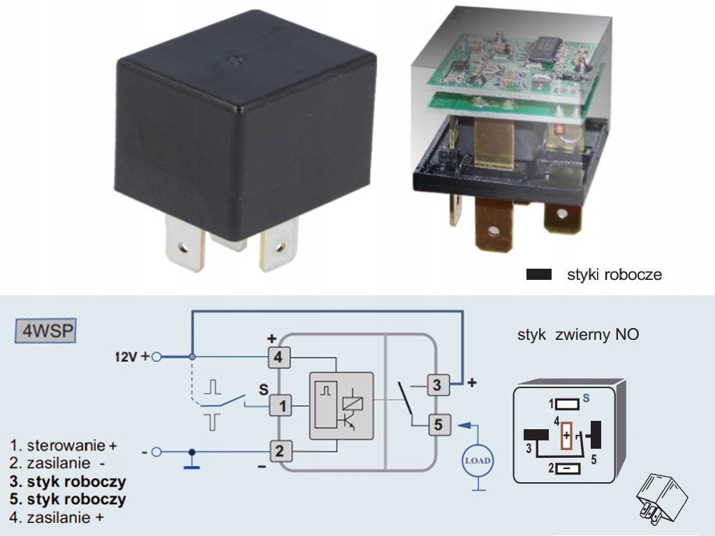 UWAGA: Przekaźnik wymaga stałego sygnału +12V na nóżce nr 4.