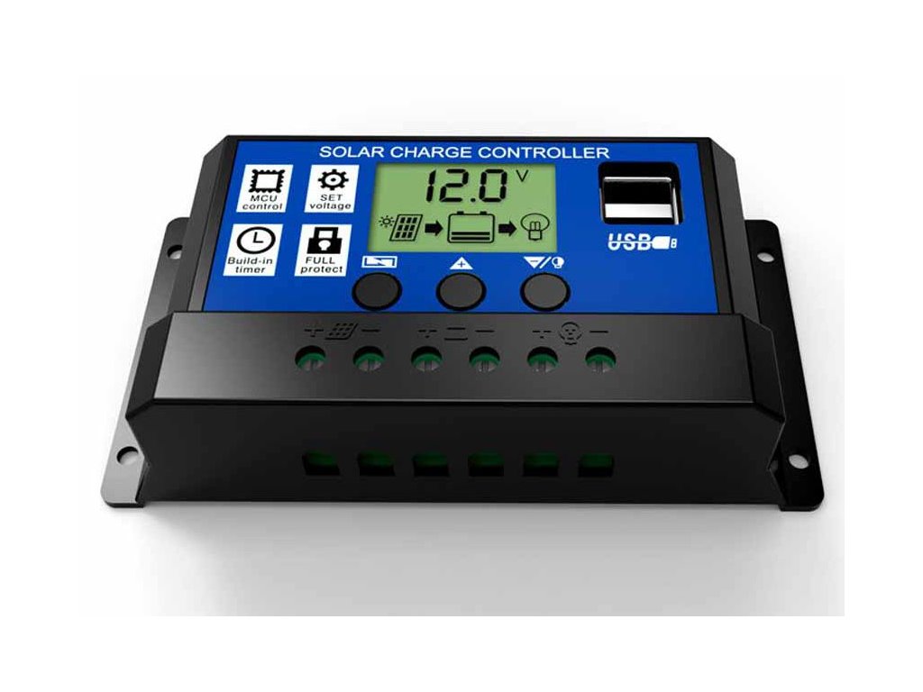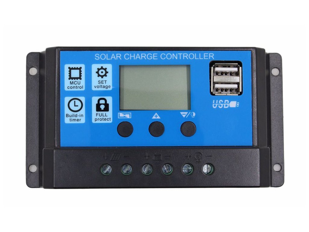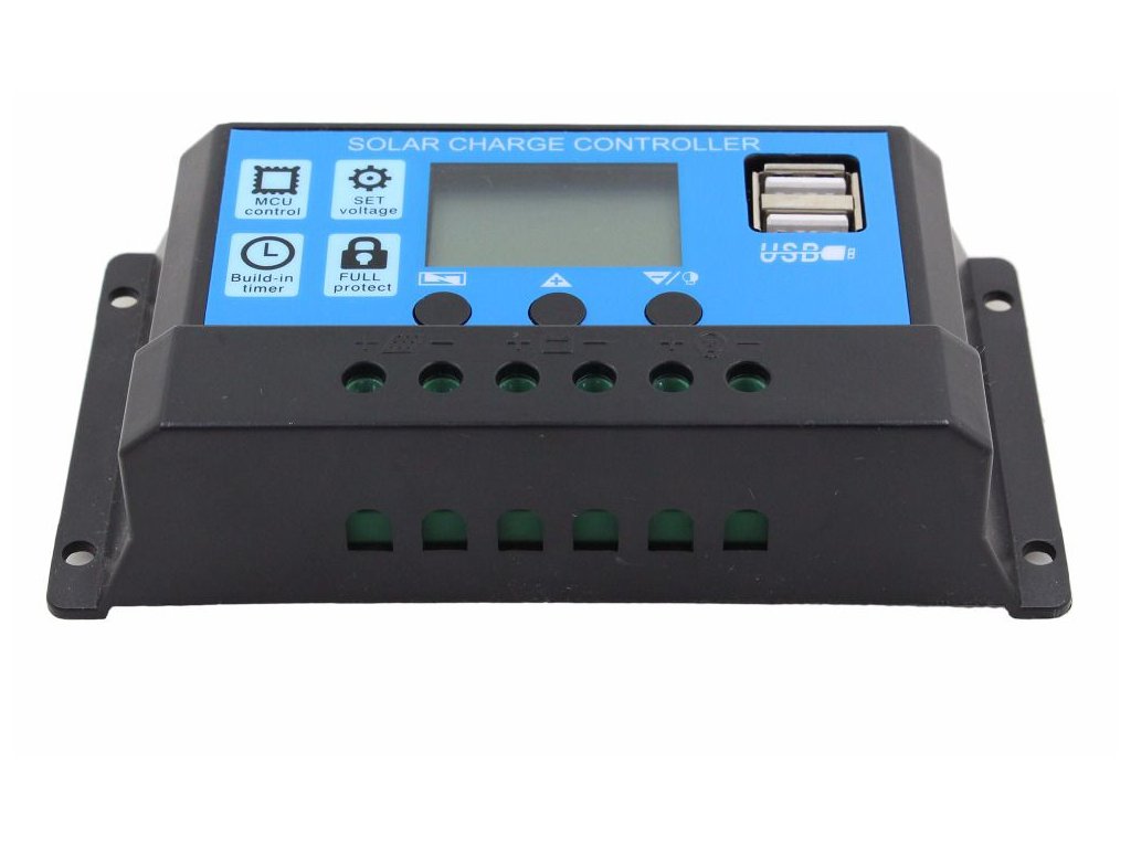 00P30 SOLARNY REGULATOR KONTROLER ŁADOWANIA 30A, do paneli fotowoltaicznych 12/24V z wyświetlaczem LCD i portami USB