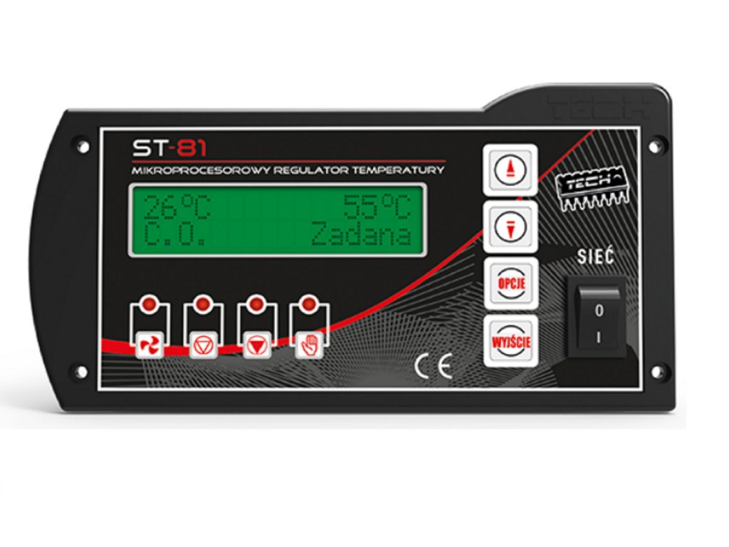 Regulátor teploty ST-81 je určený pre napájacie kotly ústredného kúrenia. Ovláda obehové čerpadlo vody ústredného kúrenia, čerpadlo teplej úžitkovej vody a ventilátor. Štyri prevádzkové režimy čerpadiel na výber: vykurovanie domu, priorita kotla, paralelné čerpadlá, letný režim. Kryt regulátora je prispôsobený na inštaláciu pod kotol.