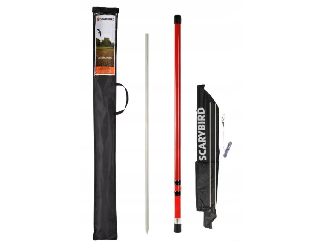 Elastyczny maszt zamocowany na wbitym w ziemię paliku z włókna szklanego zapewnia odpowiednią sprężystość, która odpowiada za nieregularny ruch latawca w powietrzu. W  odróżnieniu od nieruchomych systemów odstraszających, latawiec SCARYBIRD porusza się  w nieprzewidywalny sposób, dlatego ptaki nie przyzwyczajają się do jego obecności i uznają go za drapieżnika. Jeden zestaw to ochrona powierzchni nawet do 15000 m2.