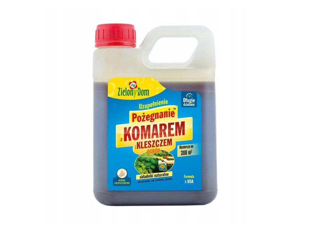 Pożegnanie z komarem i kleszczem uzupełnienie to nowoczesny repelent do odstraszania komarów i kleszczy, którego skład opracowany jest na podstawie długoletnich badań w USA. Środek ten przykleja się do roślinności i architektury ogrodowej i tworzy niewidzialną, zapachową zaporę dla owadów. Opryskany teren jest całkowicie bezpieczny dla ludzi i zwierząt domowych.