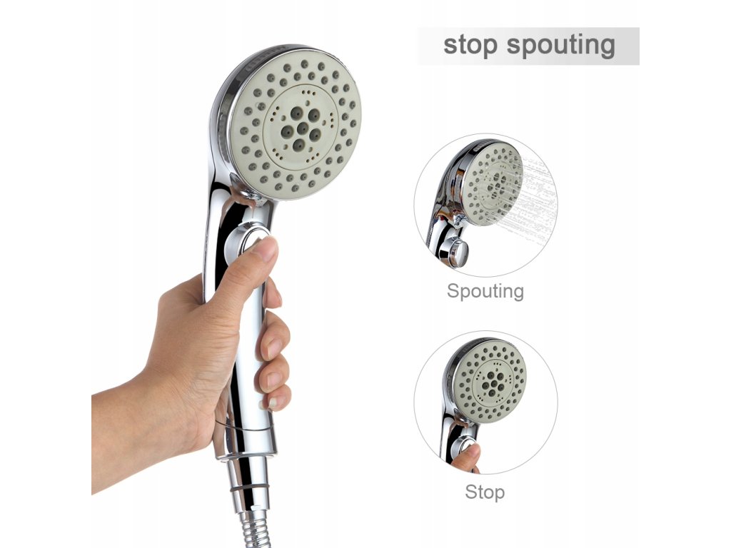 Vodné tlačidlo STOP len ručnej sprchy namiesto hlavným vypínačom riadenie jednou rukou, vhodné pre deti, veku a domáce zvieratá. Upozorňujeme, že po namočení, otočte hlavný vypínač sprchovej hlavice