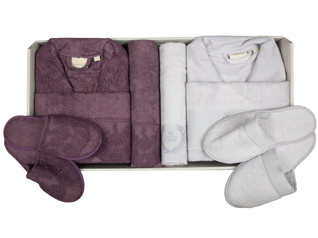 Ślubny zestaw bambusowych szlafroków, ręczników oraz kapci - 8 częściowy komplet marki IGI