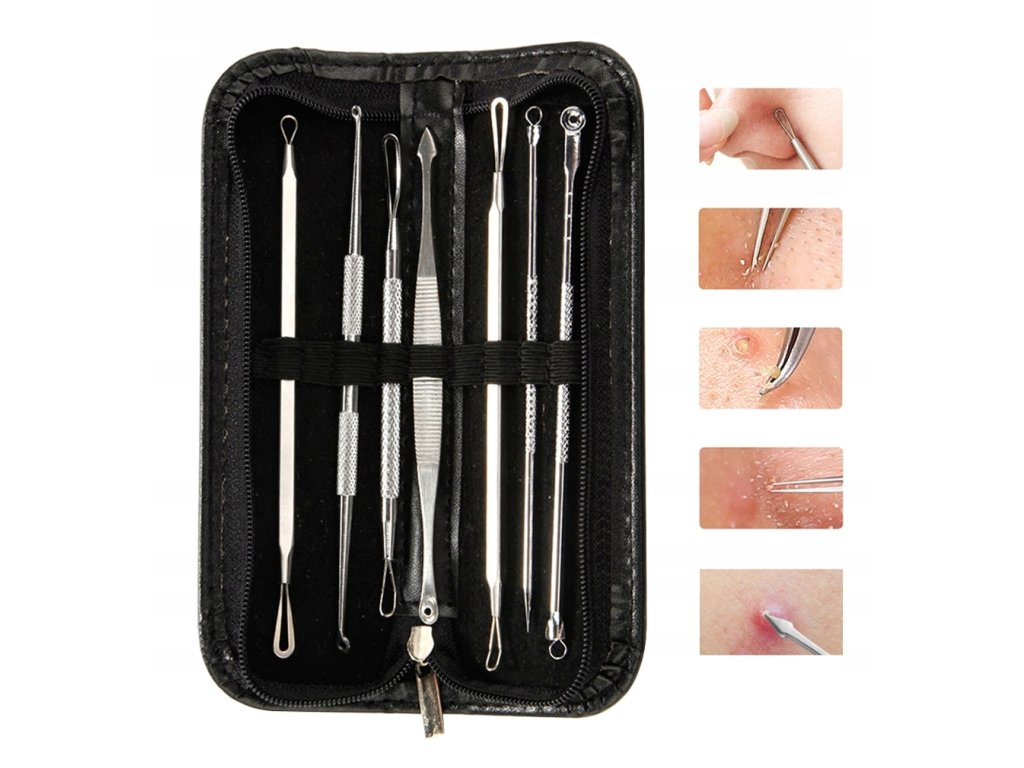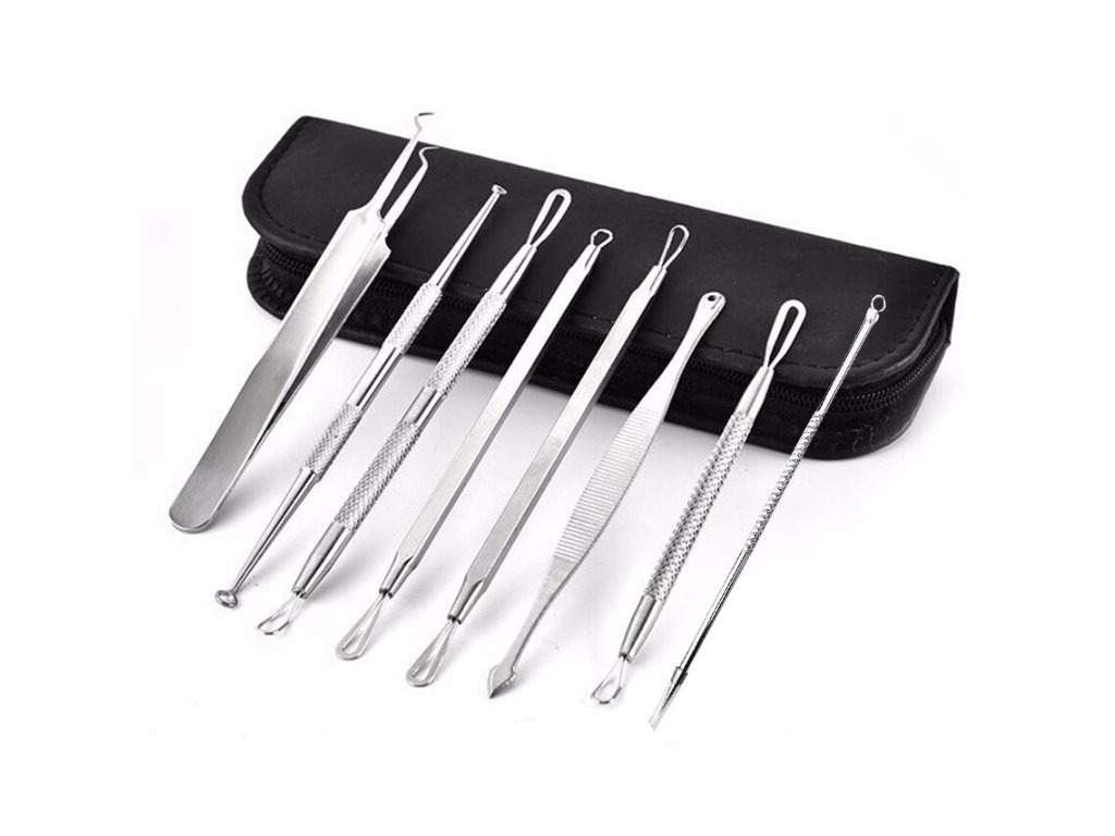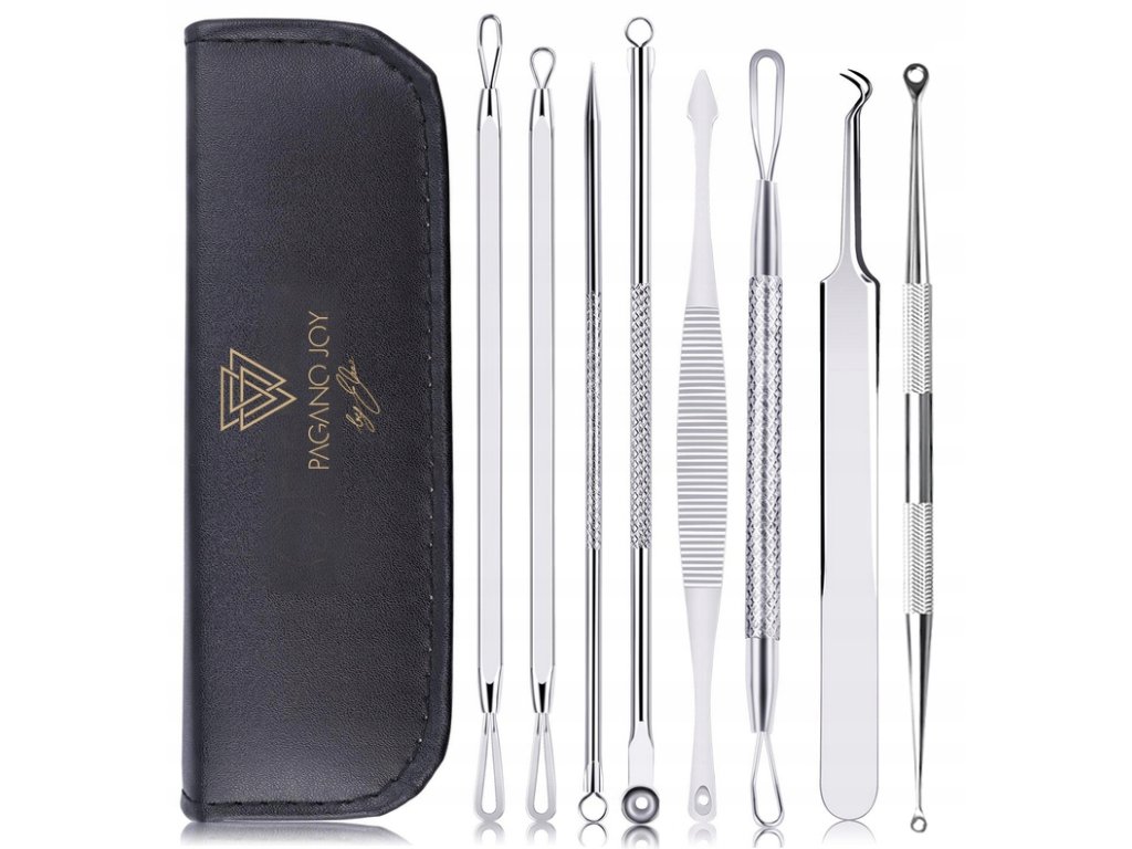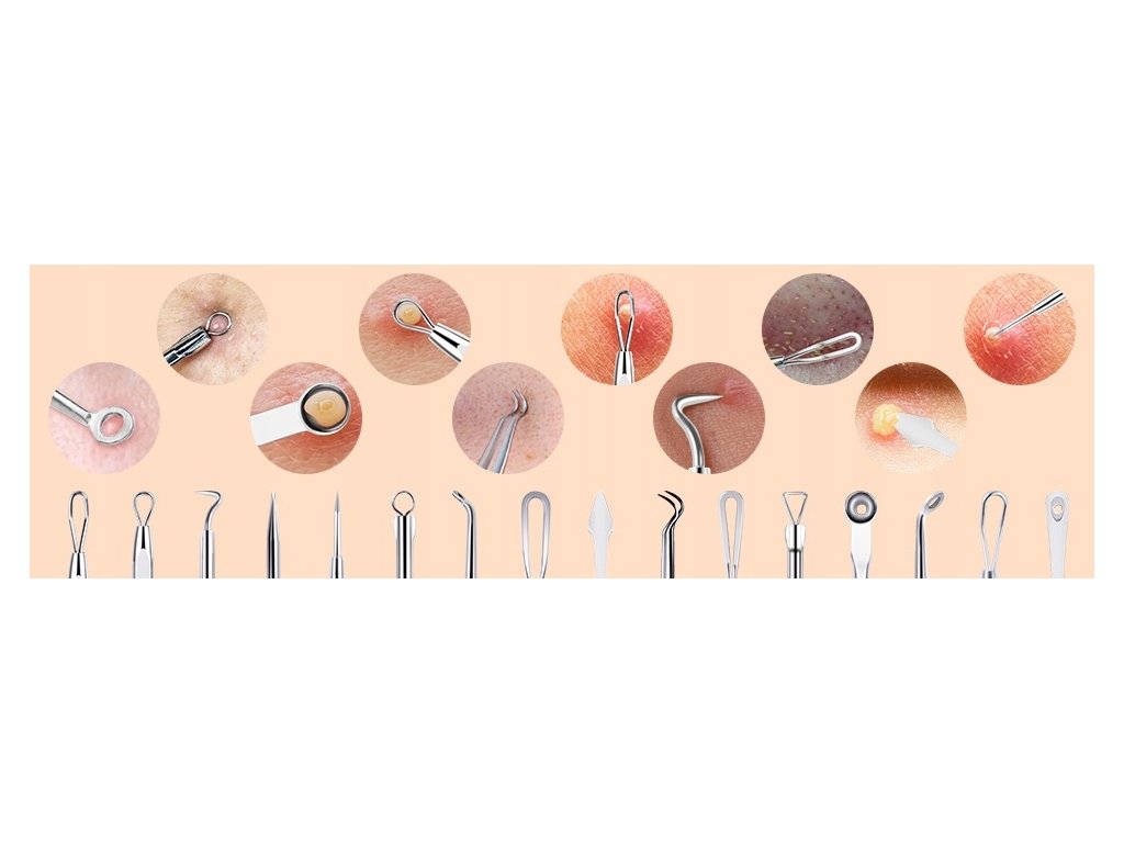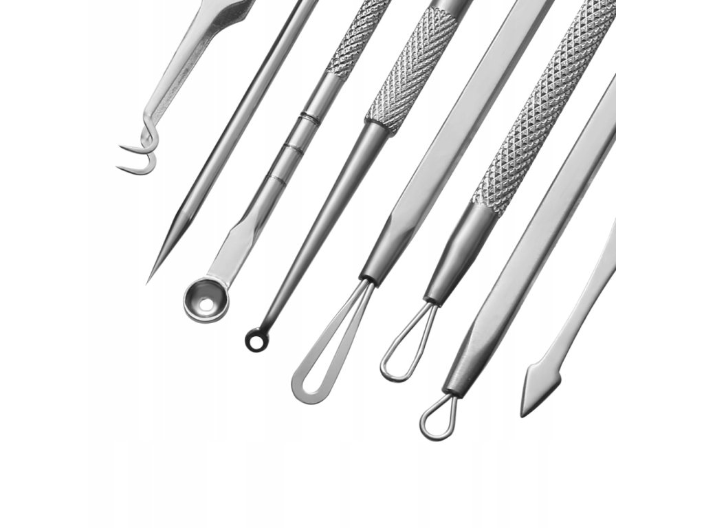 • 8 dwustronnych łyżeczek do bezpiecznego usuwania zaskórników, wągrów i pryszczy
