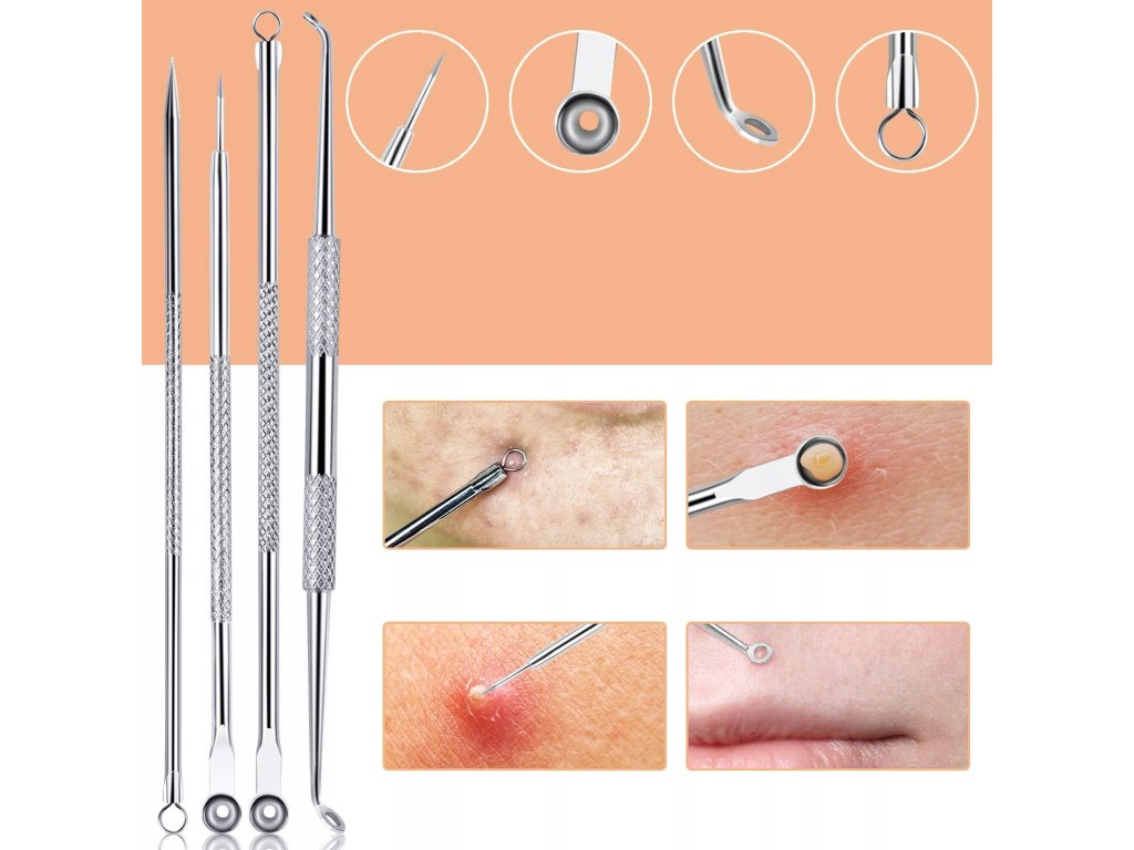 • Łyżeczki pomagają w higieniczny sposób wyciągać pryszcze z białymi końcówkami, usunąć zaskórniki i wiele innych