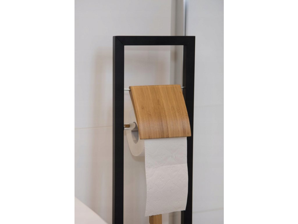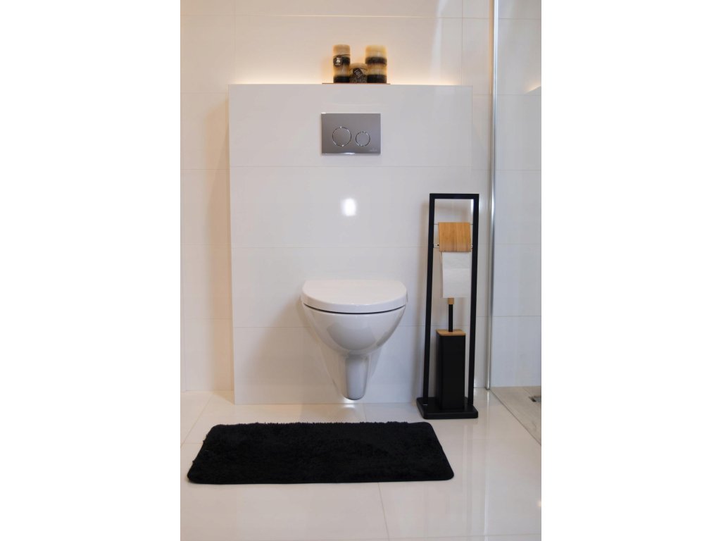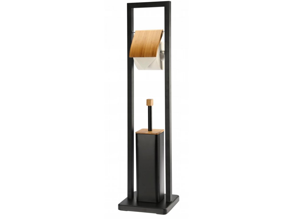 Stojan na toaletný papier+WC kefu Čierna+Bambus Black and White