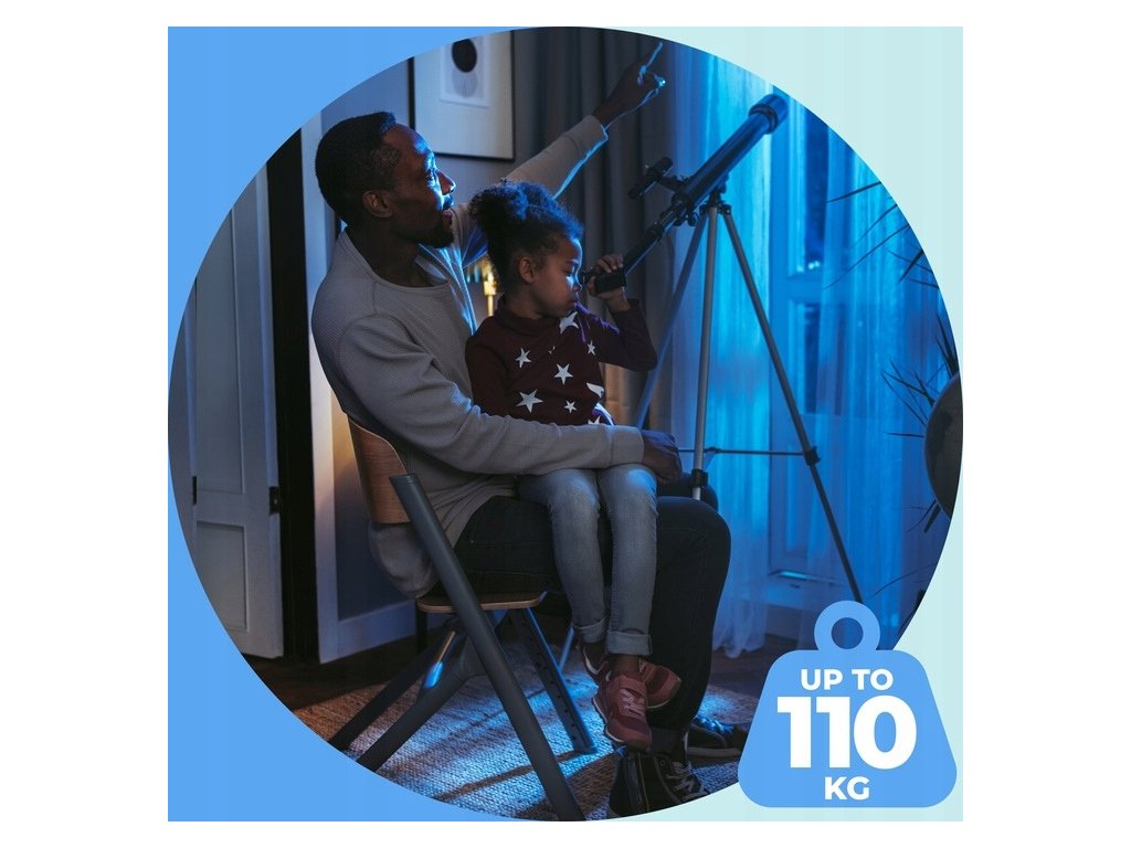 Keď vaše dieťa vyrastie, pomocou priloženého imbusového kľúča premeníte LIVY na stoličku pre predškoláka a neskôr pre tínedžera. Kreslo si tiež môžete prispôsobiť podľa seba - LIVY má nosnosť až 110 kg. Môžete ľahko vziať svoje dieťa do lona, ​​aby ste mu ukázali, ako kresliť prvé písmená.