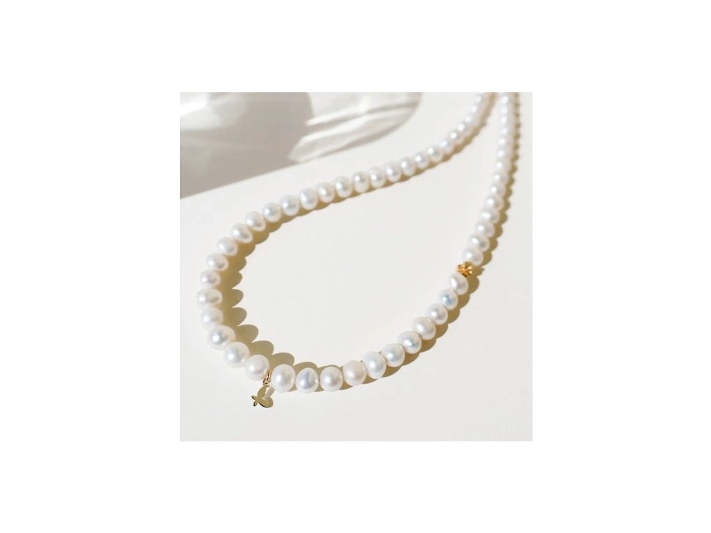 Strieborný pozlátený perlový náhrdelník 5x6 mm I 40+7 cm SADVA VYPR