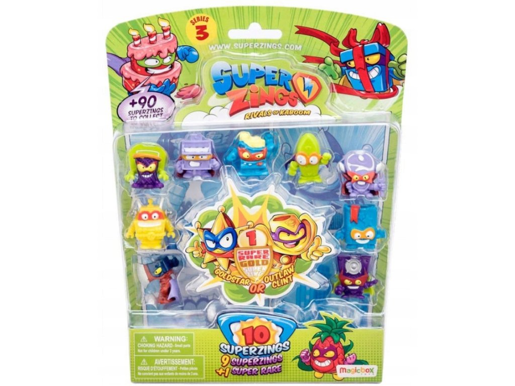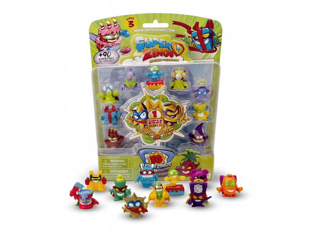 W serii 3 jest ponad 90 nowych SuperZingów! Ten spektakularny zestaw zawiera dziesięć różnych SuperZings, w tym jedną figurkę Super-Rare Gold.