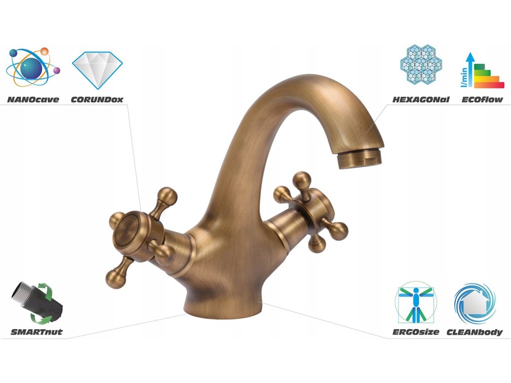 Umývadlový faucet bronzová mosadz RETRO BRONZE 1