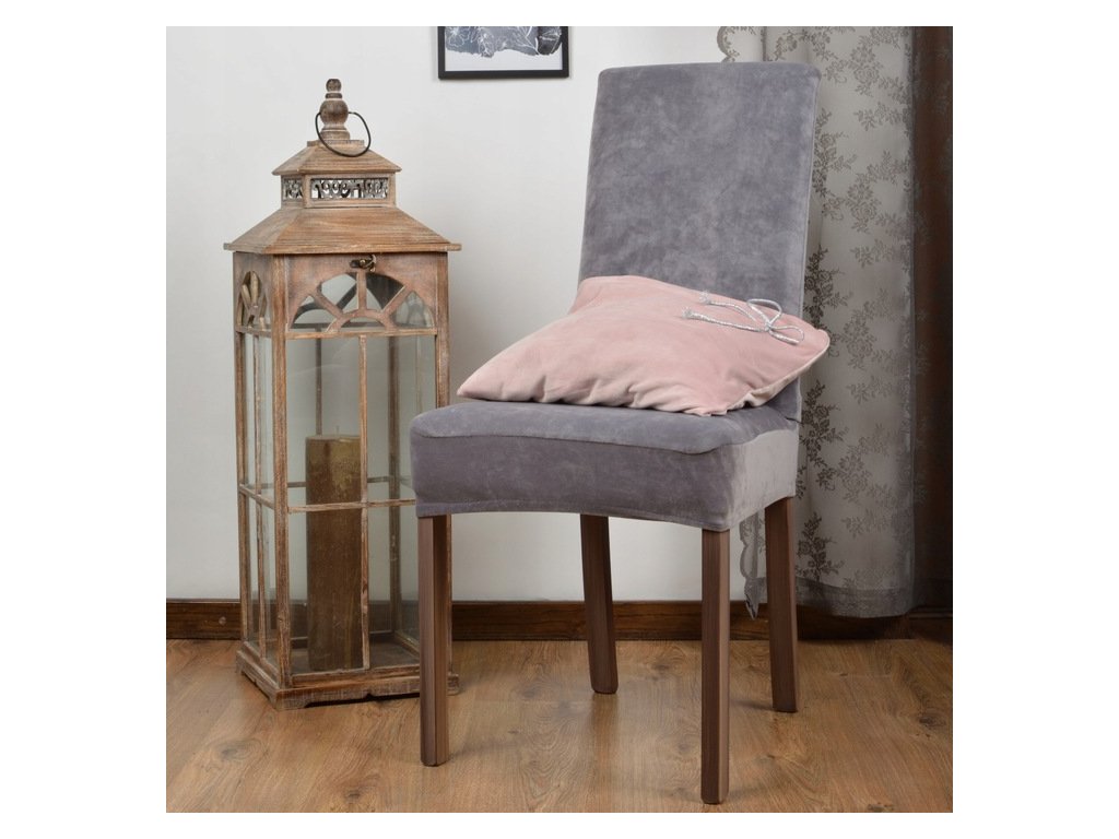 Velúrový, univerzálny, elastický poťah na stoličku, veľkosť L, sivá farba.