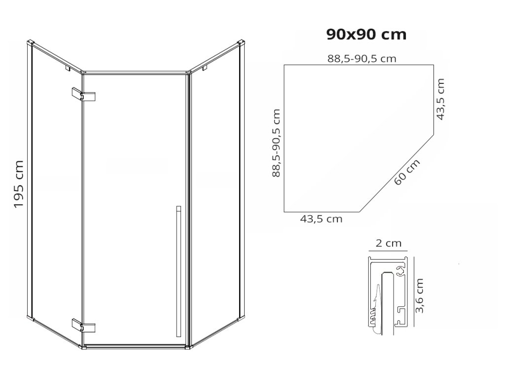 • Wymiary: 90 x 90 x 195 cm