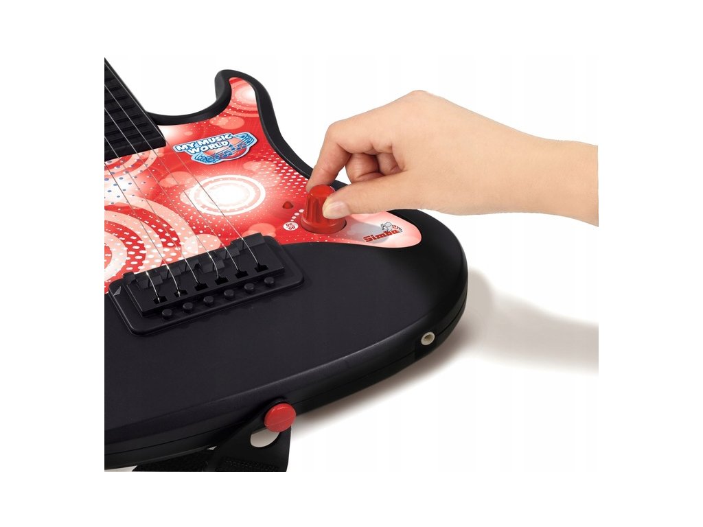 Elektrickú gitaru s mikrofónom vytvorila rešpektovaná nemecká firma Simba, ktorá už roky navrhuje kvalitné hračky so zmyslom pre detail.