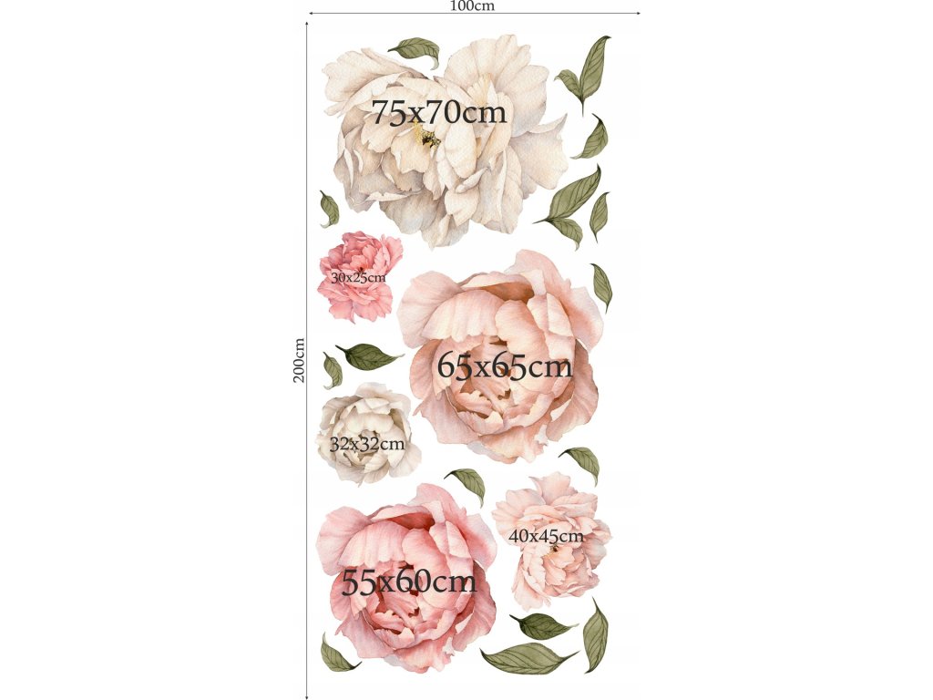 Zestaw naklejek na ścianę kwiaty PIWONIE, arkusz 100x200cm.