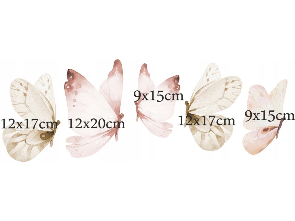 Delikatne motylki w wymiarach podanych na zdjęciu..