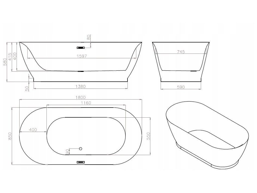 Samostatne stojaca vaňa MEXEN ROXY 180 x 85 + sifón