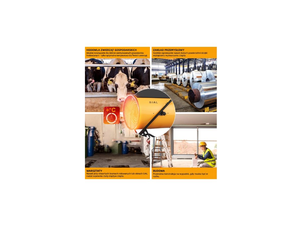 Tento všestranný priemyselný ohrievač je vhodný pre rôzne nastavenia: