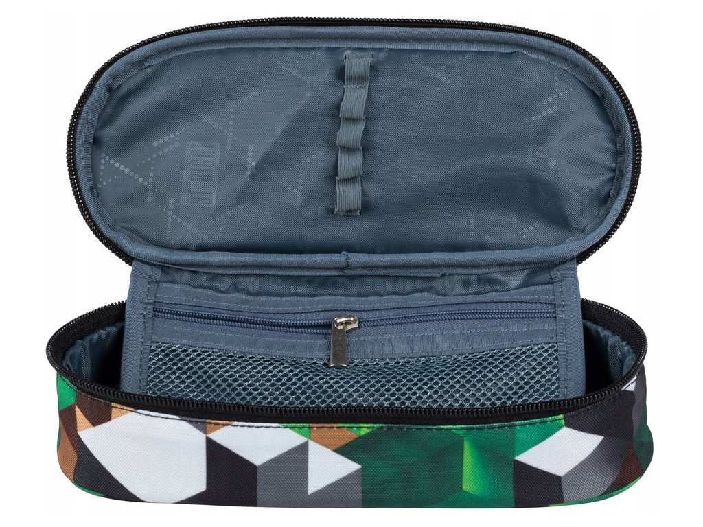 Praktický peračník zapínaný na zips. Peračník je vystužený. Vo vnútri má prídavnú chlopňu s vreckom na zips. Chlopňa má gumičky na uchytenie písacích potrieb.