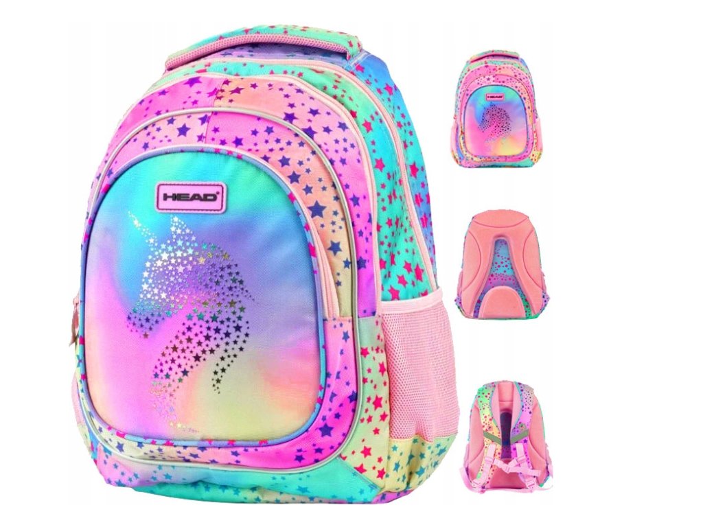 Školský batoh pre prváčky pre dievčatá s OMBRE JEDNOROŽCOM a hviezdičkami od HEAD. Ľahký batoh vyrobený z vysoko kvalitných materiálov s hrudným popruhom, určený pre deti 1. – 3. ročníka základnej školy.