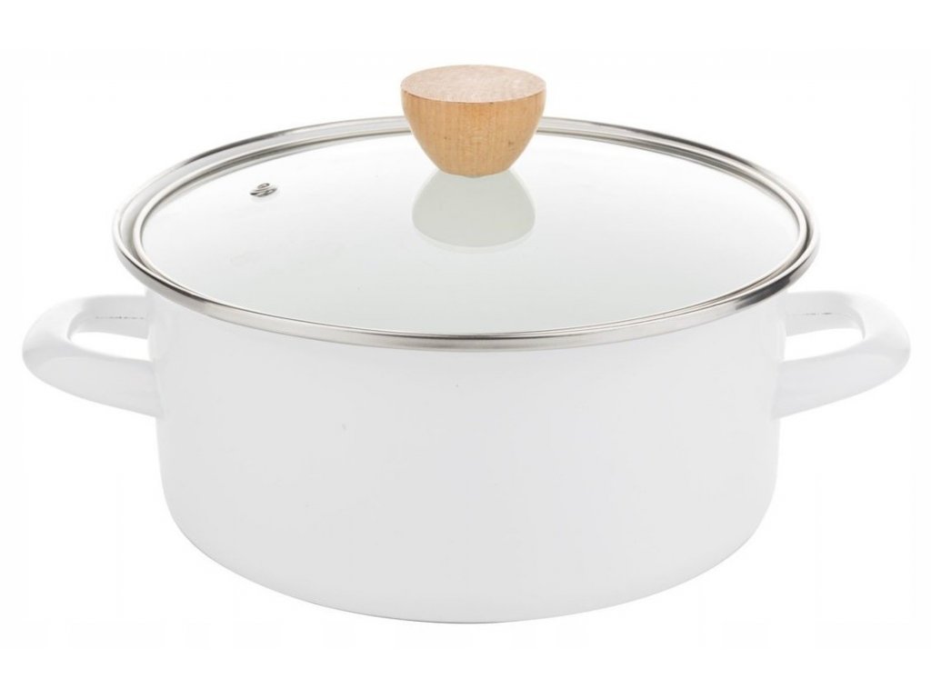 Smaltovaný hrniec na plyn a indukciu Enamel Frida 20 cm 2,9 l biely - kuchynský riad bezpečný pre zdravie