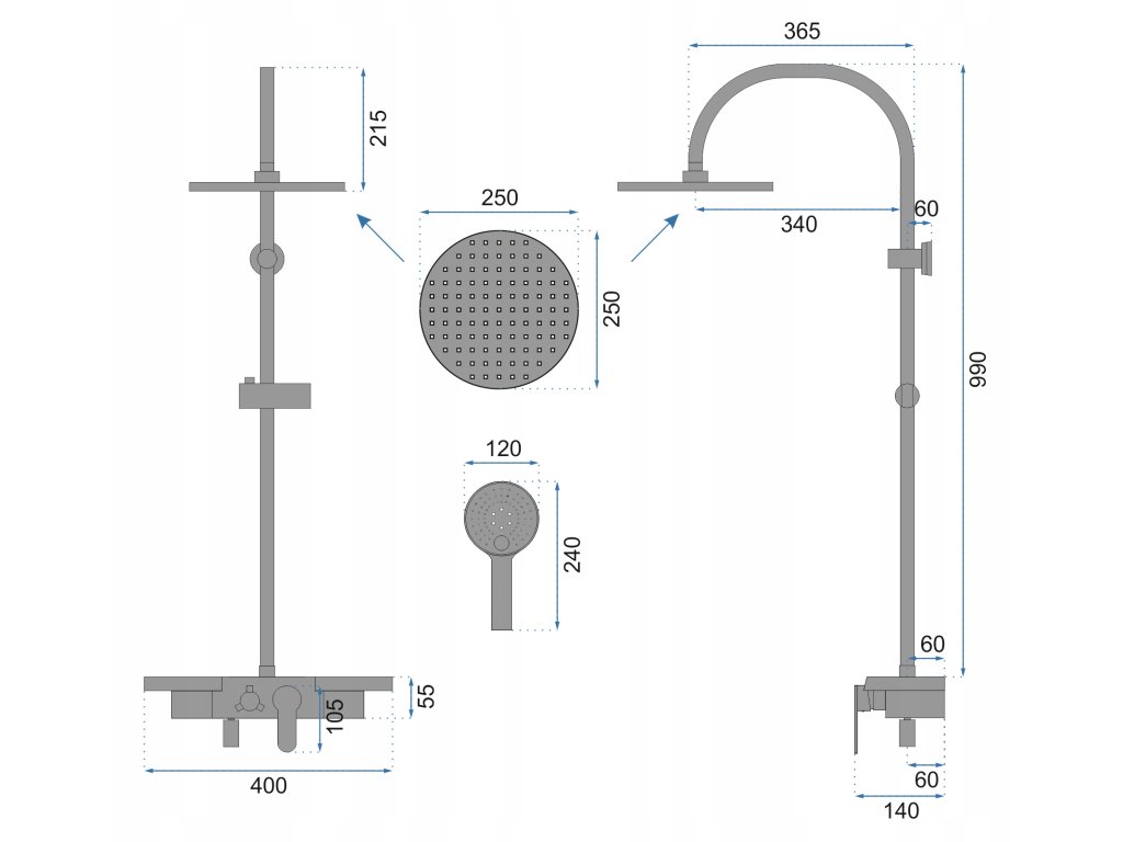 REA VIGO BLACK zestaw natryskowy z deszczownicą i wylewką wannową czarny
