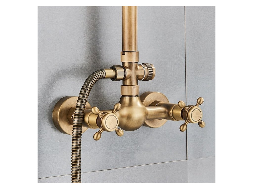 Štýlový sprchový set Old Retro v krásnej mosadznej farbe