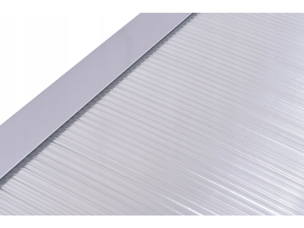 Zastosowanie najwyższej jakości tworzyw sprawia, iż konstrukcja daszka jest stabilna i mocna. Pokryciem daszka wykonane jest z płyty z poliwęglanu komorowego.