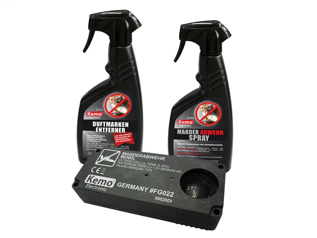 Preparaty z serii Kemo Z100 oraz Z101 pozwalają jednocześnie usunąć ślad zapachowy kuny oraz zabezpieczyć dane miejsce w taki sposób aby kuna się w nim już więcej nie pojawiła. Odstraszacz Kemo FG022 działa na zasadzie emisji ultradźwięków, dźwięków wywołujących uczucie wysokiego dyskomfortu u zwierząt.