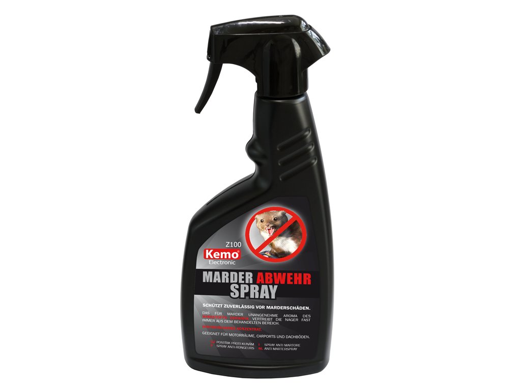 Odstraszacz Kemo Z100 w sprayu to wysoce efektywny środek oparty o odstraszające działanie geraniolu - substancji silnie drażniącej kuny.