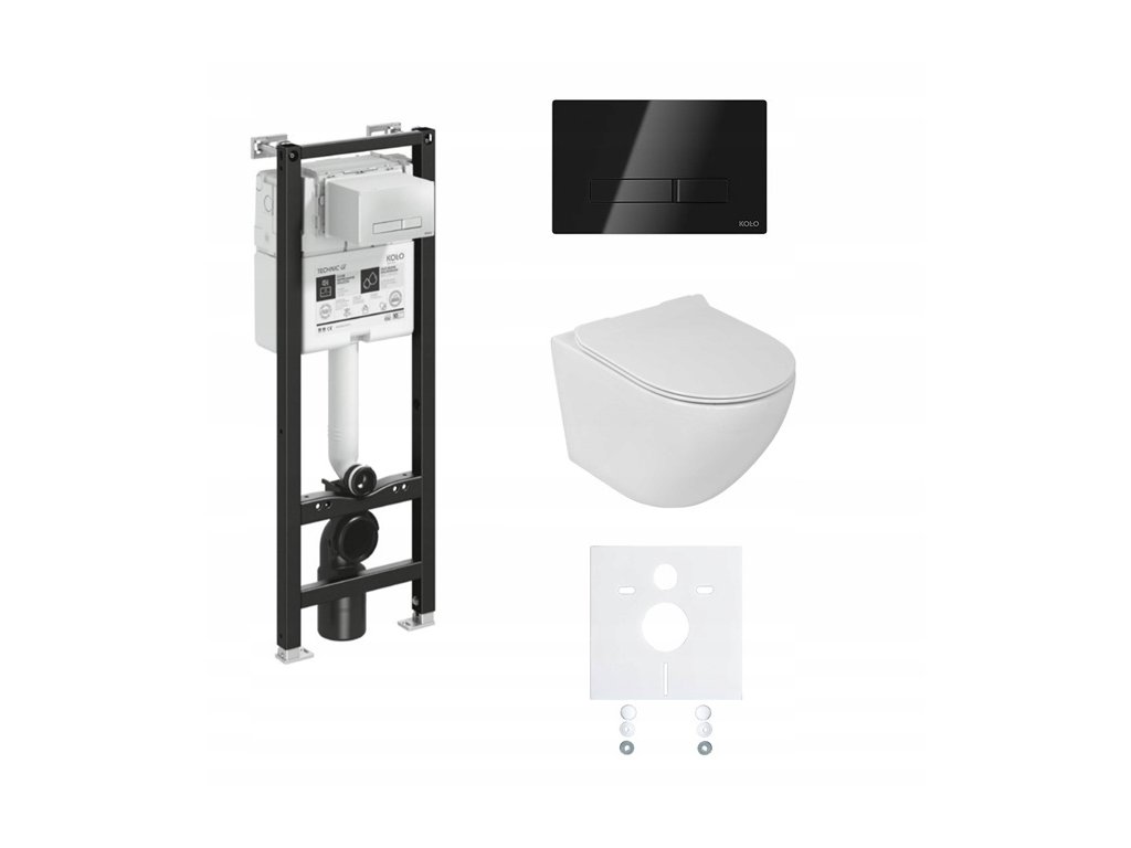 Zestaw KOŁO stelaż podtynkowy do WC z przyciskiem ELEGANT (czarny bł.) + miska WC z deską + mata wygłuszająca